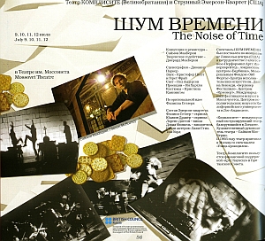 Саймон Макберни:  Шадрин сказал, что я вот уже много лет игнорирую Россию. Отвечу: Россию невозможно игнорировать. И я этого не делал. Во всех моих спектаклях русская культура играла огромную роль. Вообще, если тебя интересует театр в любом его проявлении, ты неизбежно придешь к русской культуре и театру. Во всяком случае, со мной такая история приключилась. Но я поговорю о конкретном спектакле. Он называется "Шум времени". Он основан на наших ощущениях от 15-го квартета Шостаковича. Когда меня попросили поставить этот спектакль, а эту идею мне подал "Эммерсон-квартет", который праздновал новое тысячелетие записями всех квартетов Шостаковича, я ответил, что Шостакович играл громадную роль в моей жизни, но что мне кажется совершенно невозможным построить театральное представление на этом произведении. Я считал, что это настолько глубокое, темное и самодостаточное музыкальное сочинение, что существовать оно может только в ушах слушающих, но никак не в визуальных или театральных проявлениях.