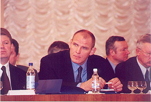 Юрий Лужков смирил политические амбиции, и, казалось, объединительный процесс автоматически делает Сергея Шойгу первым лицом новой партийной машины. Шойгу начал было в верхах вести себя как вождь партии "Единого Отечества". И вот в субботу Сергею Шойгу пришлось давать соратникам неприятные публичные разъяснения в связи, как он выразился, "с подарком неких сил съезду". Постоянные разговоры о следствии в Министерстве по чрезвычайным ситуациям взбудоражили делегатов. Шойгу утверждал: уголовного дела против него как министра нет, в МЧС - обычные проверки. Общеупотребительная версия: Кремль методично выдавливает из власти старые ельцинские кадры, выдвигая питерцев с чекистским прошлым. Он и дал понять Шойгу: незаменимых героев у России нет. Вождь у страны один - президент Путин.